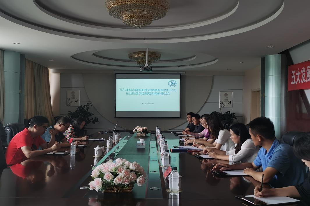 为积极探索建立企业新型学徒制培训机制,拓宽校企合作新途径,7月17日上午,学院校企合作处负责人张占荣一行赴鄂尔多斯市隆胜野生动物园有限责任公司就企业新型学徒制培训进行调研座谈。东胜区就业局作为政府主管部门代表同时参加了座谈会。