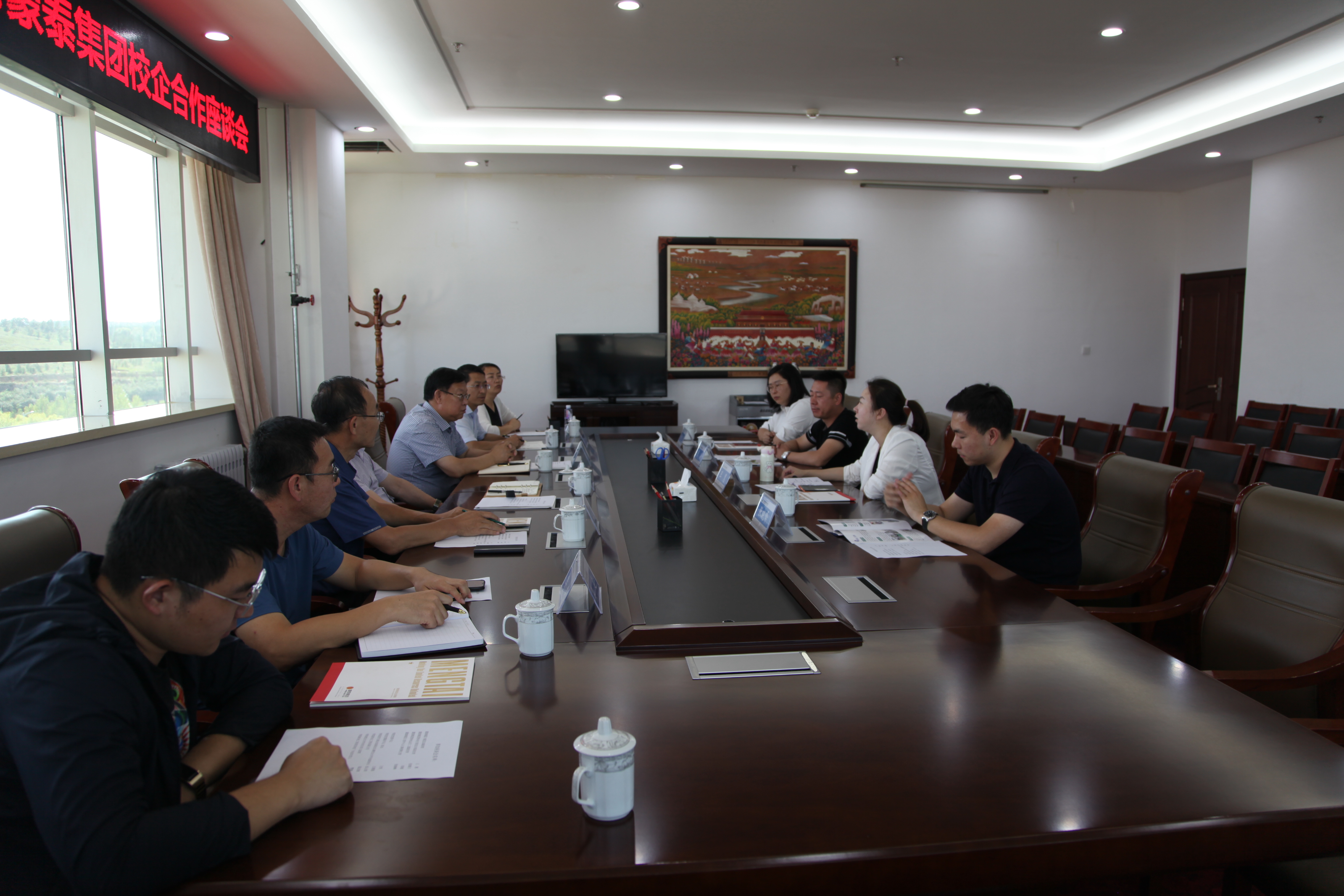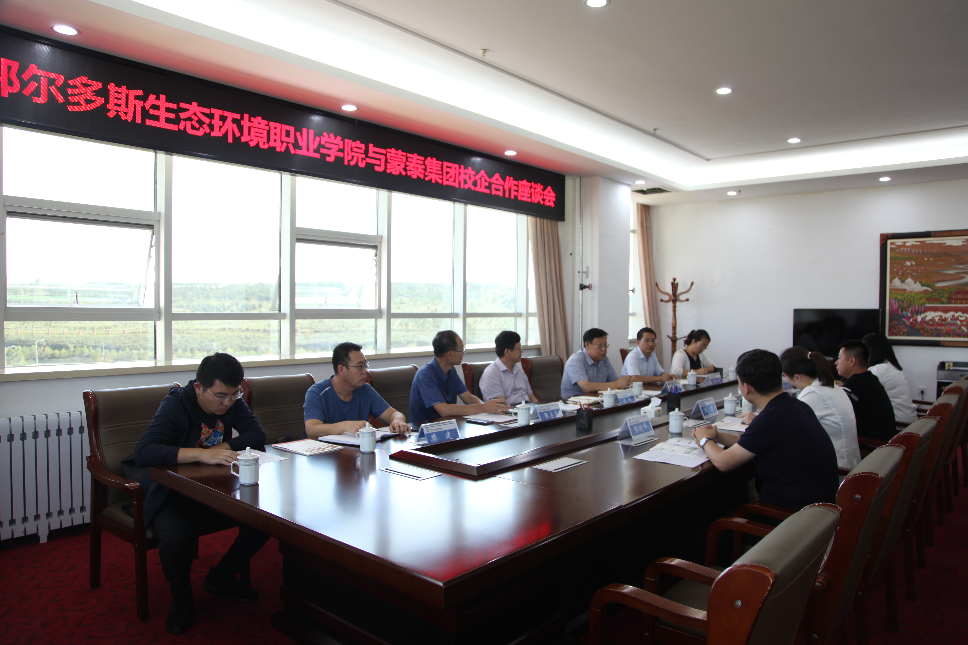 8月26日下午,我院与蒙泰集团校企合作座谈会在学院图文信息楼701召开。学院党委书记王恒,党委副书记、院长王德强,蒙泰集团总裁助理王惠出席座谈会。