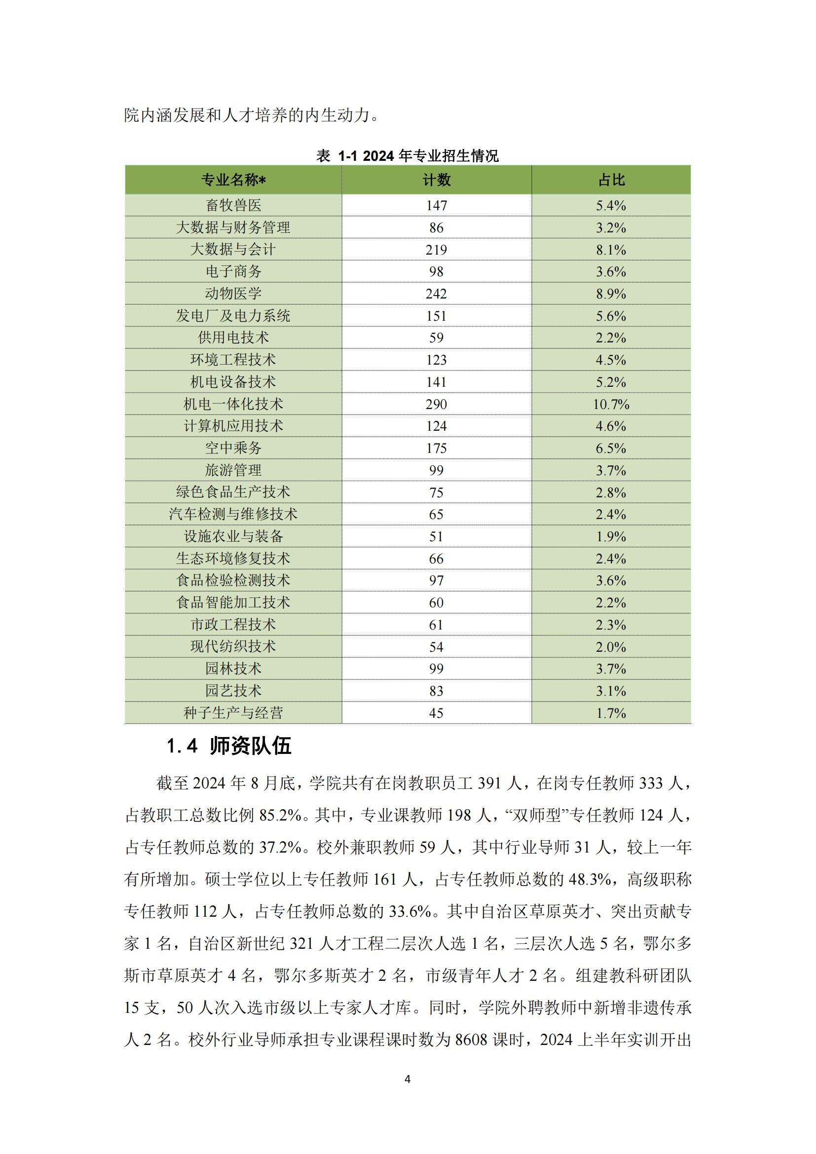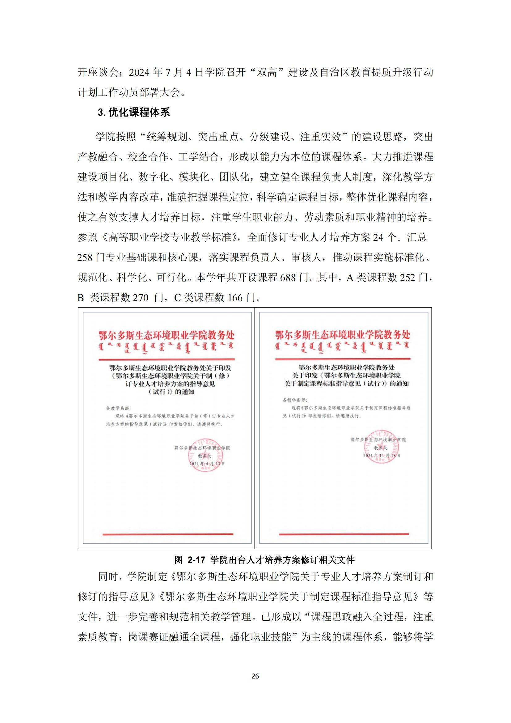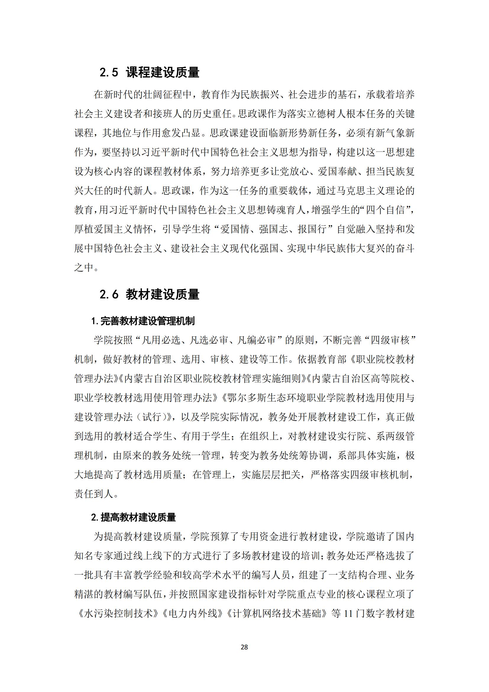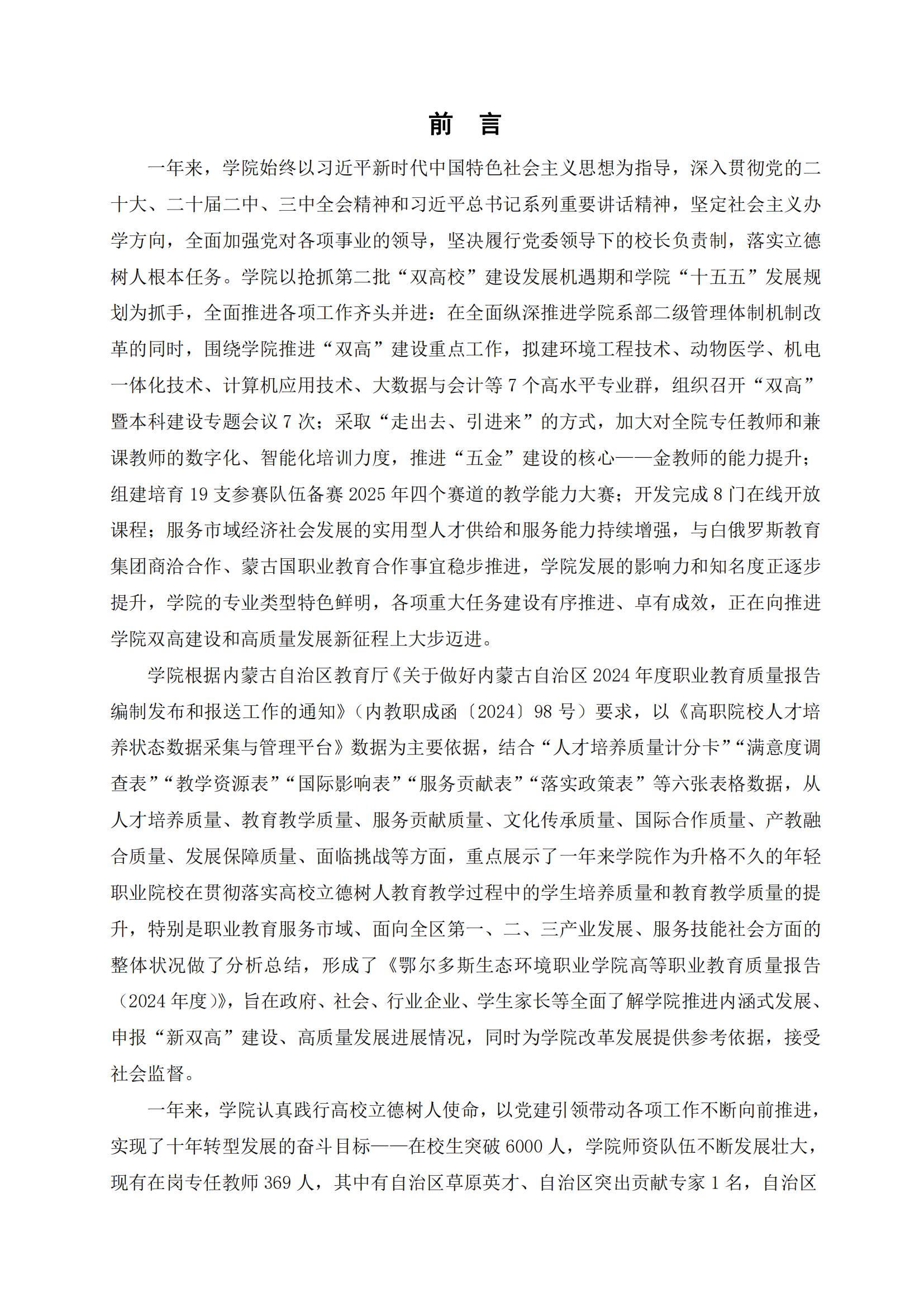 鄂尔多斯生态环境职业学院2024年度中国职业教育质量报告